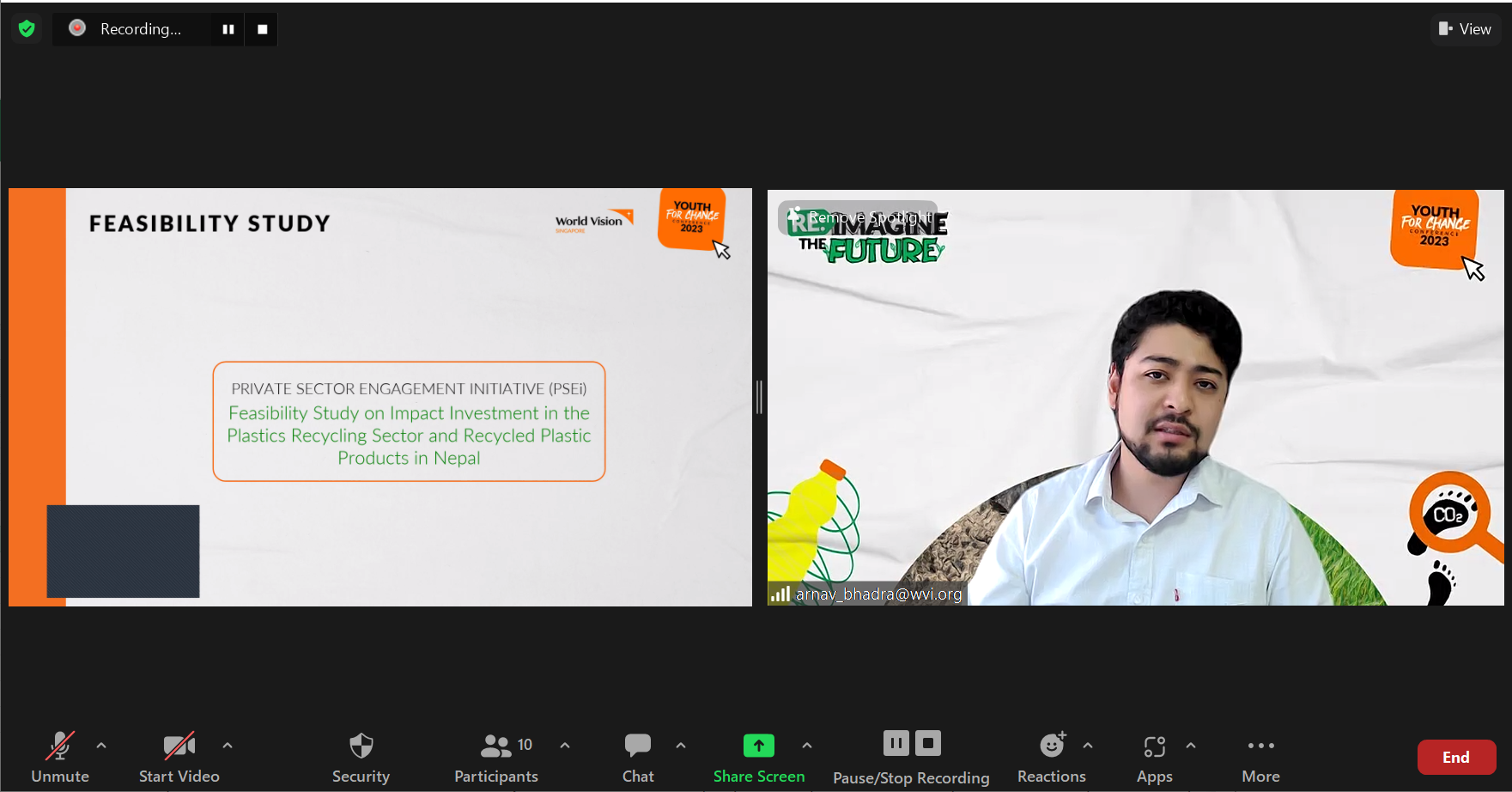 In the second virtual visit of the day, Mr Arnav Bhadra, an Innovation Programme Specialist at World Vision Nepal’s Innovation Lab (NLab), shared about the environmental challenge that Nepal faces with regards to plastic waste, and the innovative thinking and design behind transforming plastic waste into Polyfloss material, which can be used to insulate school roofs. Participants also heard testimonies from teachers and students about how the newly Polyfloss-insulated roofs in their school buildings allowed them to learn better by bringing down the temperature in the classroom in the summer, and also dampening the sound of rain during the wet season.